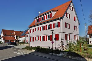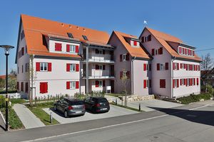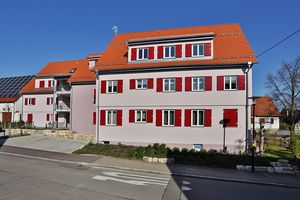 - Besonderheiten: In Abstimmung mit der Denkmalbehörde, Anpassung an Baustil im Ortskern, Laubengang zwischen den Gebäuden, Personenaufzug, Tiefgarage, Maisonettewohnungen um OG/DG, jede Wohnung mit Balkon, Fußbodenheizung